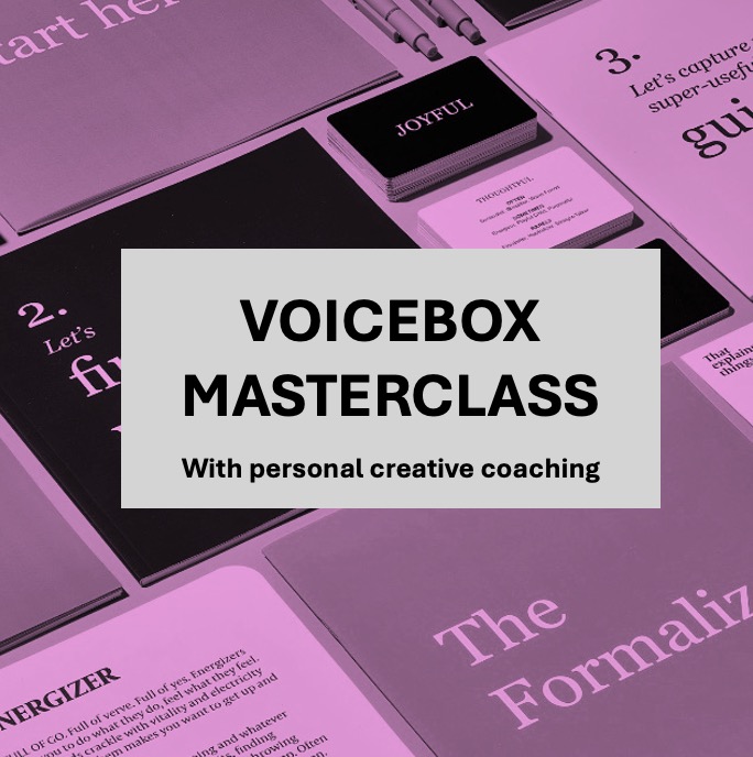 Voicebox is a method within a physical box (you also get everything digitally) containing books, cards, games, exercises and processes so you can explore, workshop, and play with tone of voice to find the voice that’s right for your brand. (The digital version also means you can work collaboratively online.)